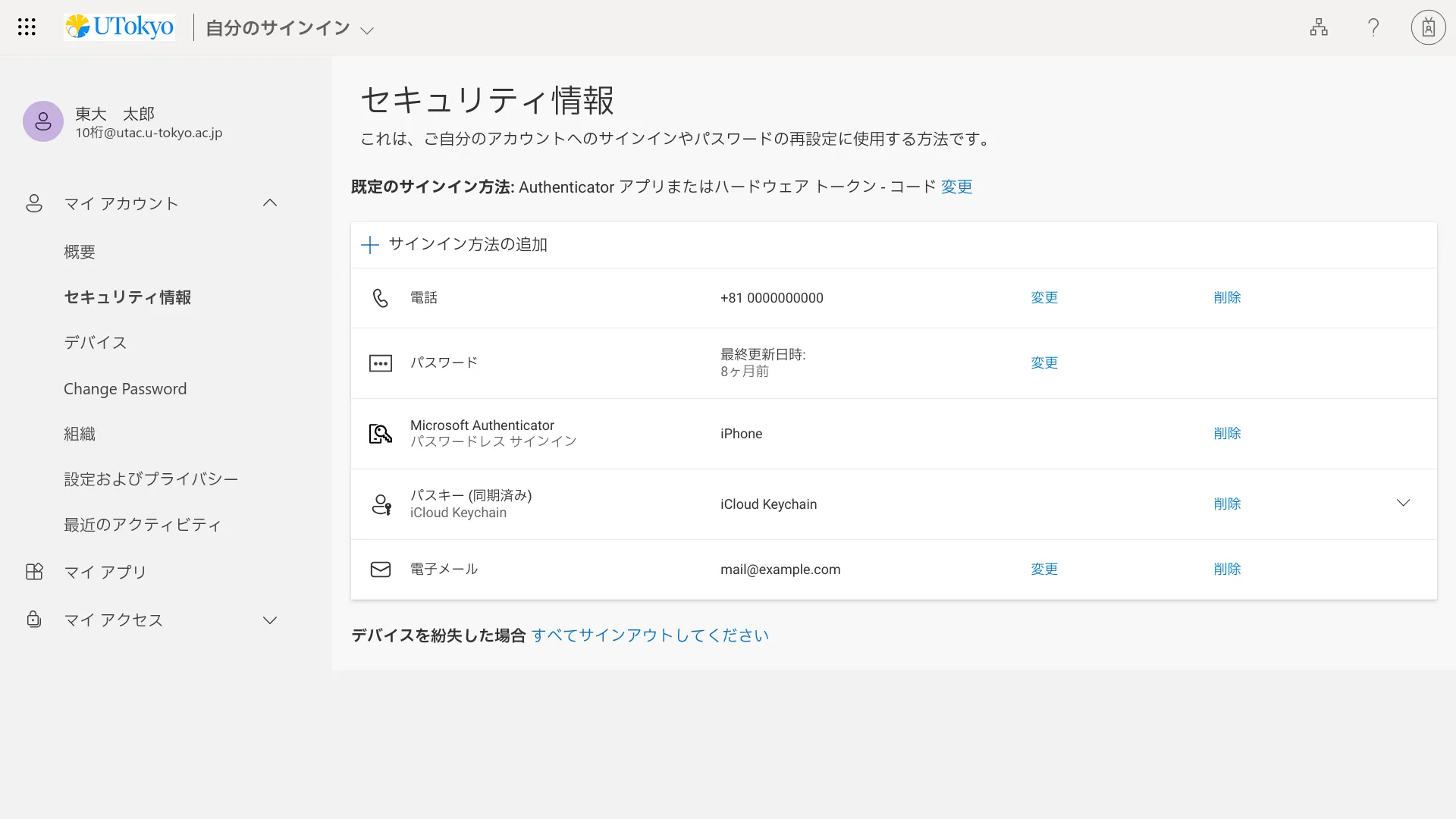 本人確認方法を1個しか登録していなくても多要素認証を利用することはできますが,故障や機種変更などで登録されている本人確認方法が使えなくなった場合,UTokyo Accountにサインインできなくなってしまいます.このような事態を防ぐため,複数の本人確認方法を登録しておくことを強く推奨します.
