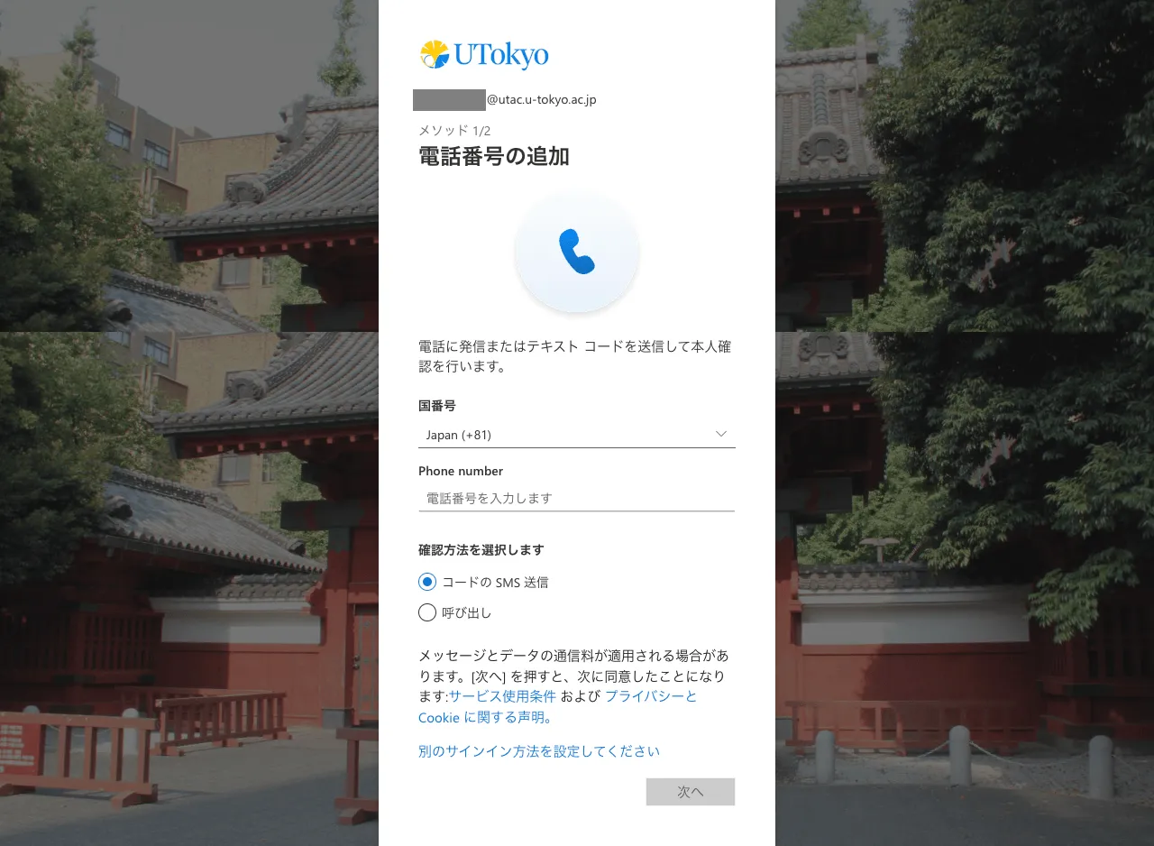 手順を終えると,その後UTokyo Accountにサインインする際,毎回,設定したSMSや専用のアプリなどで本人確認することが求められます.登録した本人確認方法(スマホのアプリや電話番号)が利用できない状態ではUTokyo Accountにサインインすることができなくなりますので,十分ご注意ください.