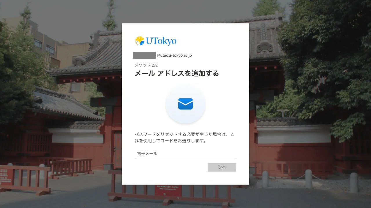 2. UTokyo Account(数字10桁の共通ID + @utac.u-tokyo.ac.jp)とパスワードを入力してログインしてください.