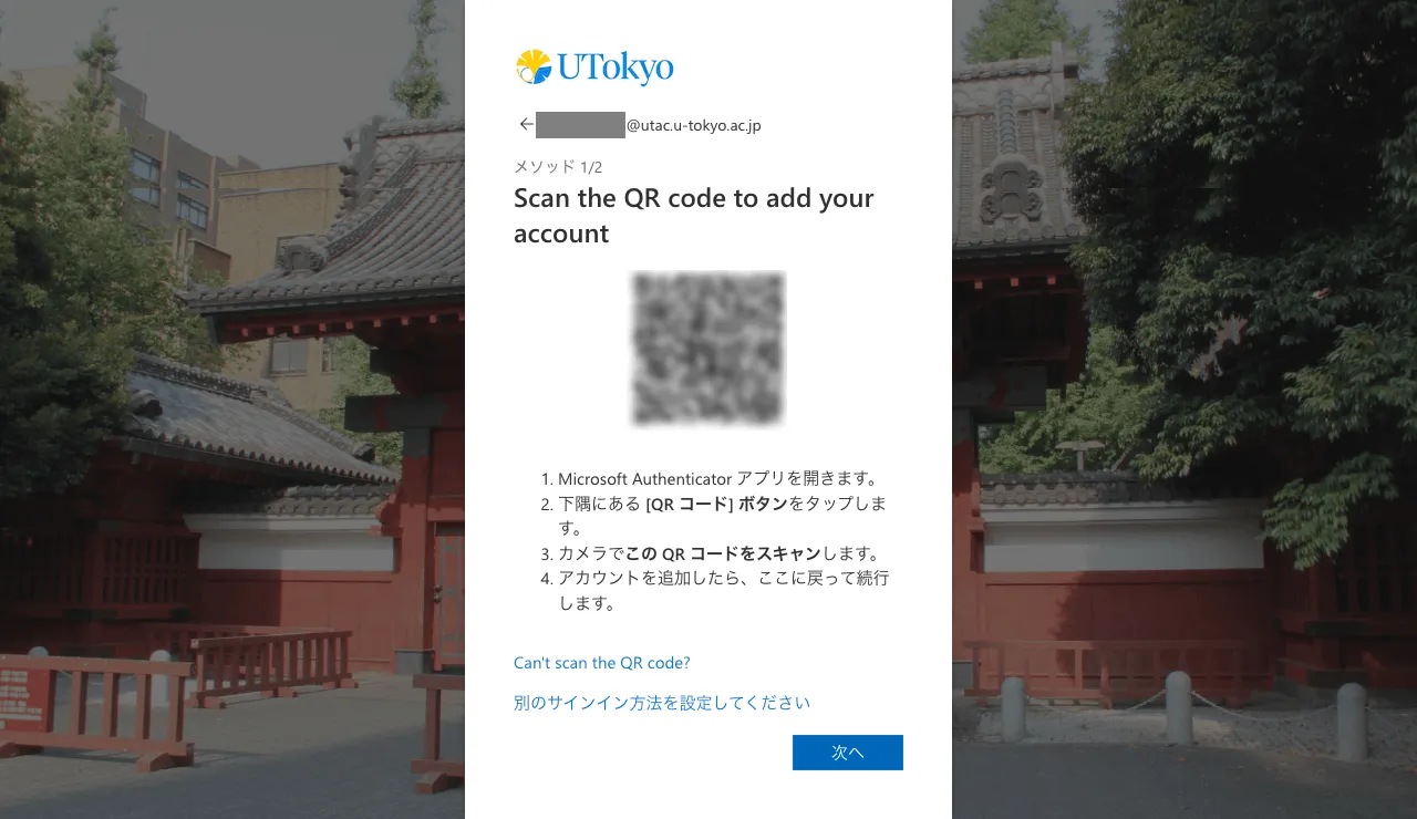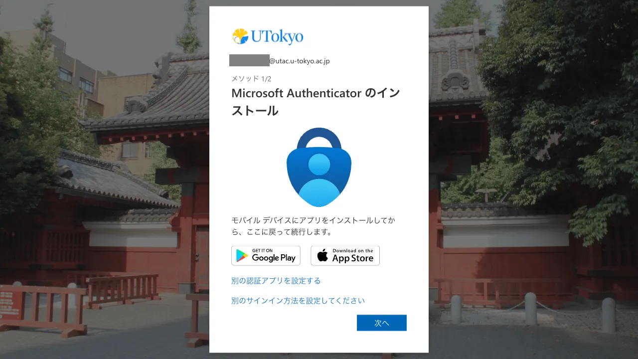 UTokyo Account多要素認証の初期設定手順