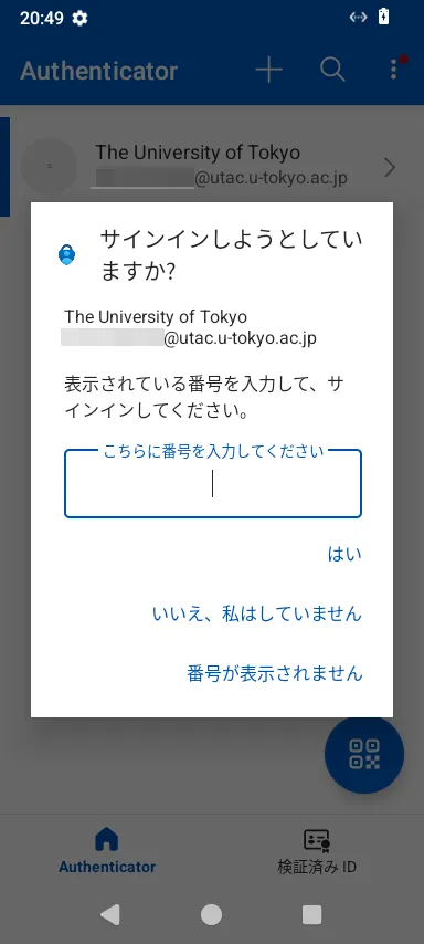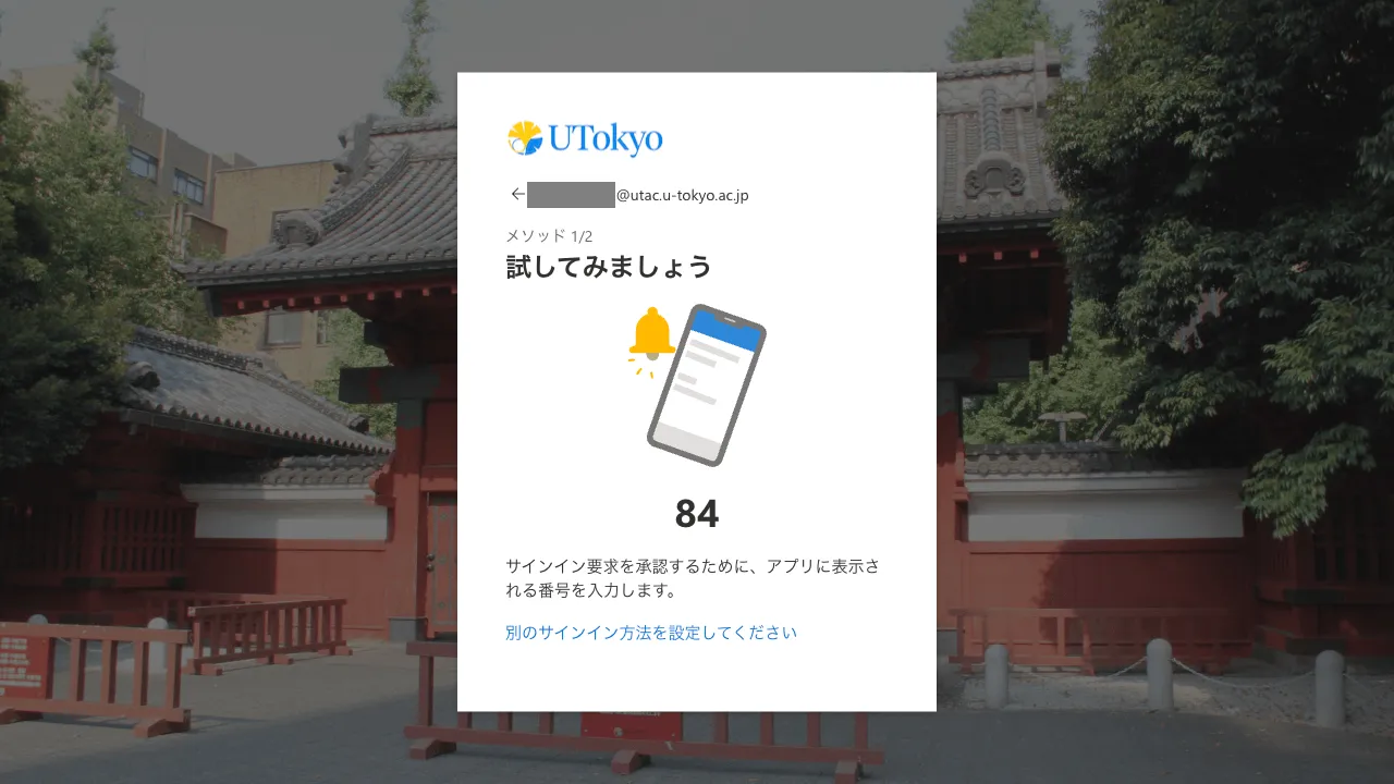 • Microsoft Authenticatorの場合:スマホに通知が送られ,サインイン画面に表示されている2桁の数字を入力するように求められるので,そのようにしてください.
