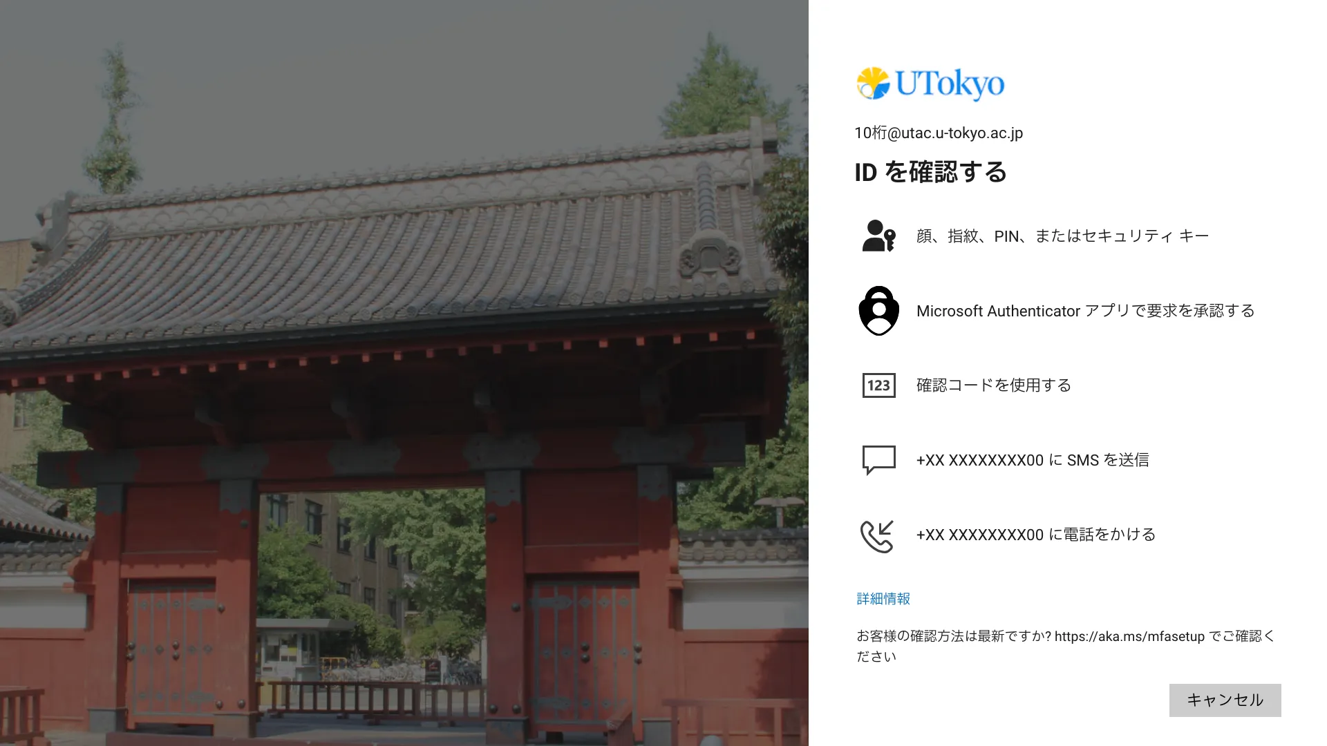 5. 続いて多要素認証の本人確認が行われます.本人確認方法により手順が異なりますので,画面の指示に従って操作してください.