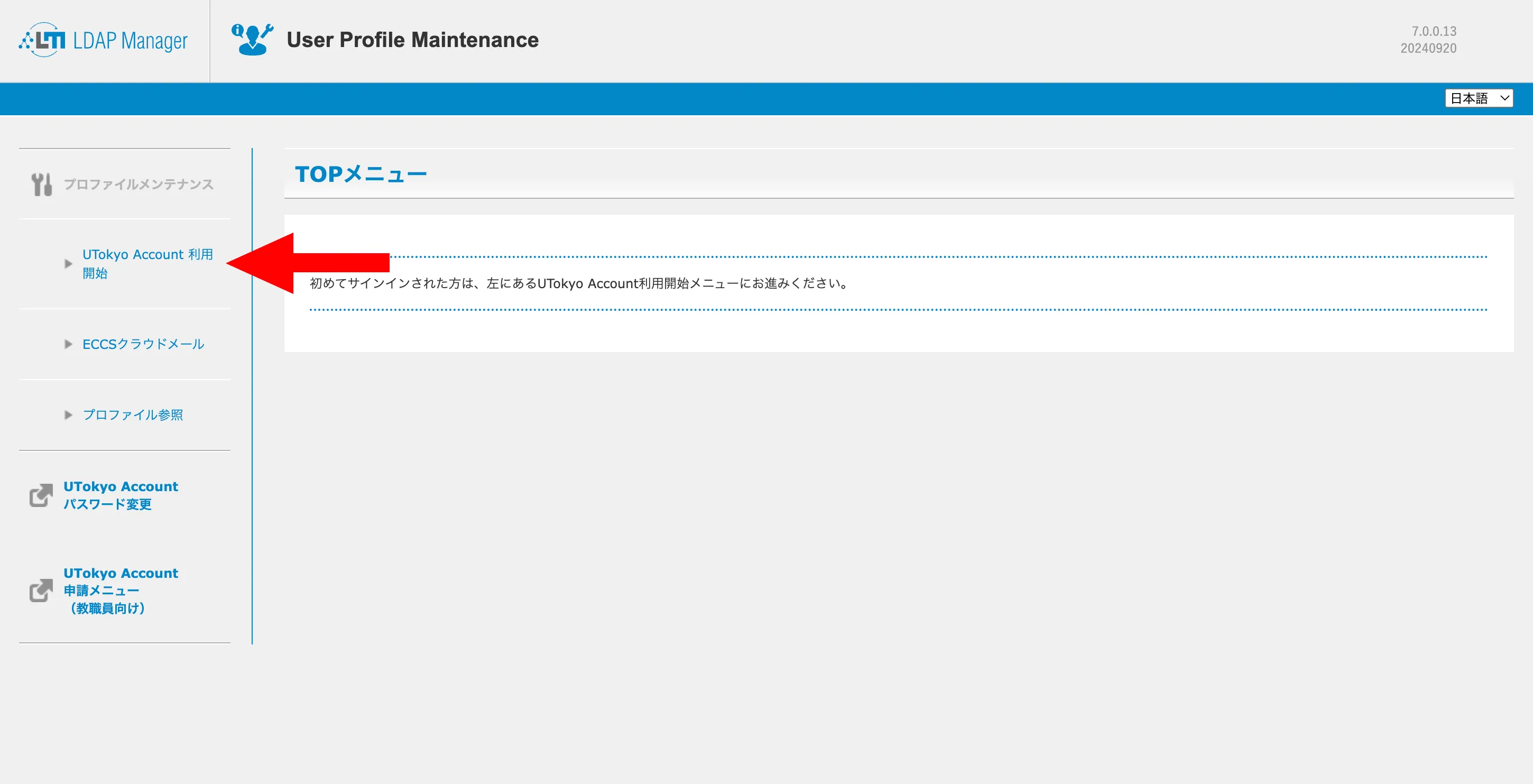 1. UTokyo Account利用者メニューにアクセスしてください.