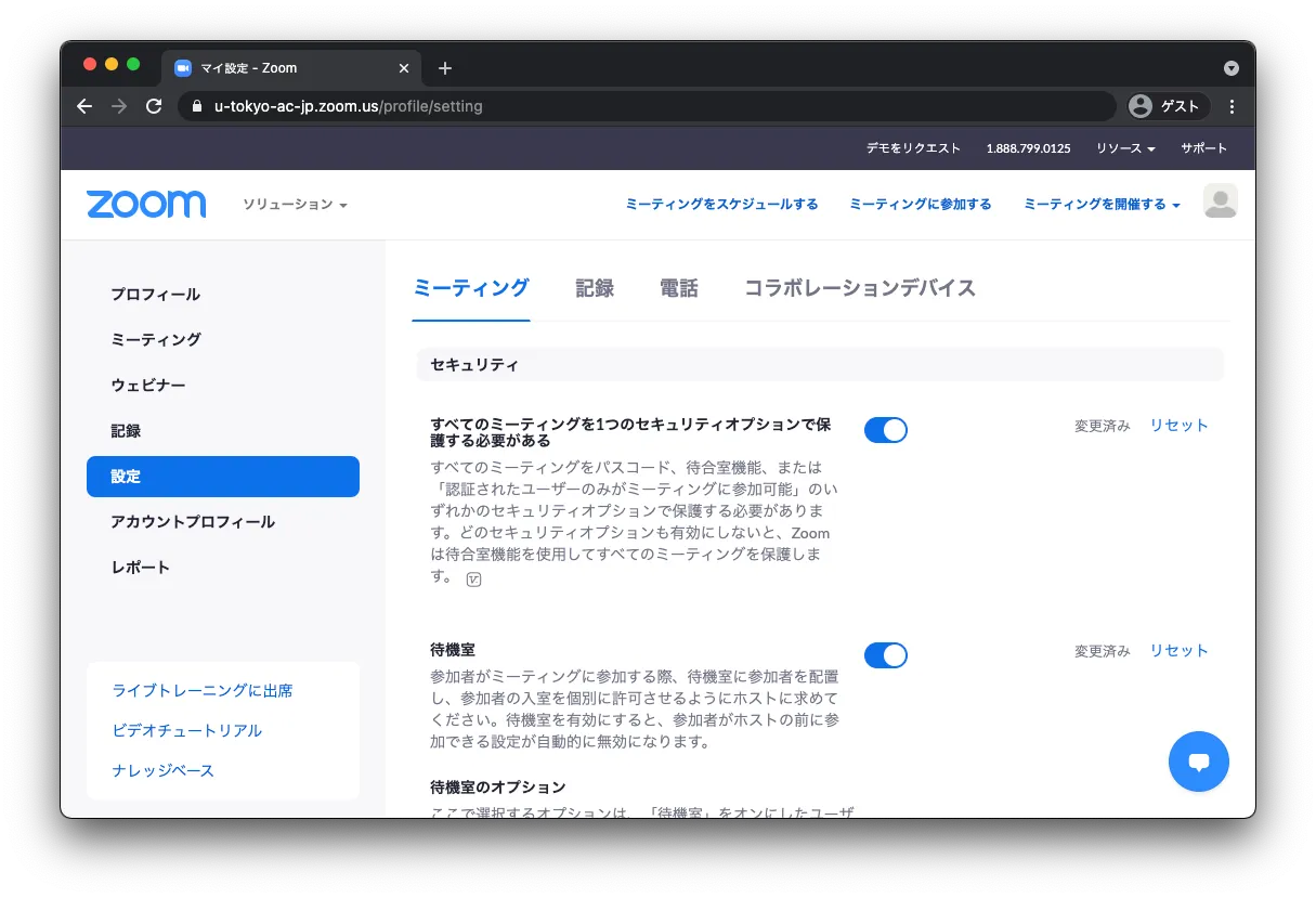 などがありますので,ミーティングを実施する前に意図した設定になっているかをご確認ください.この設定が全てのミーティングに反映されます.